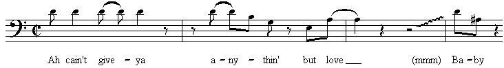 Ma prendiamo adesso una canzone popolare, ad esempio "I can't give you anything but love, baby". Ebbene si può cantare questa canzone in un numero infinito di modi. La può cantare un coro o Louis Armstrong o Maria Callas, oppure si può suonare senza cantarla per niente. E suonarla può essere una banda, un complesso jazz o un'orchestra sinfonica. E la si può suonare fredda, calda, dolce, sentimentale, violenta, forte, piano. Non ha la minima importanza. La si può ripetere una o quindici volte, in tutte le chiavi, e persino con tutti gli accompagnamenti possibili. Si può persino cambiare l'aria e improvvisarci sopra. Insomma, il motivo base è questo: